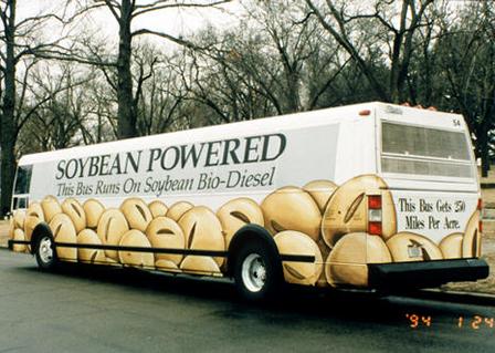 Bus powered by biodiesel made from soybeans! Pic: NBB